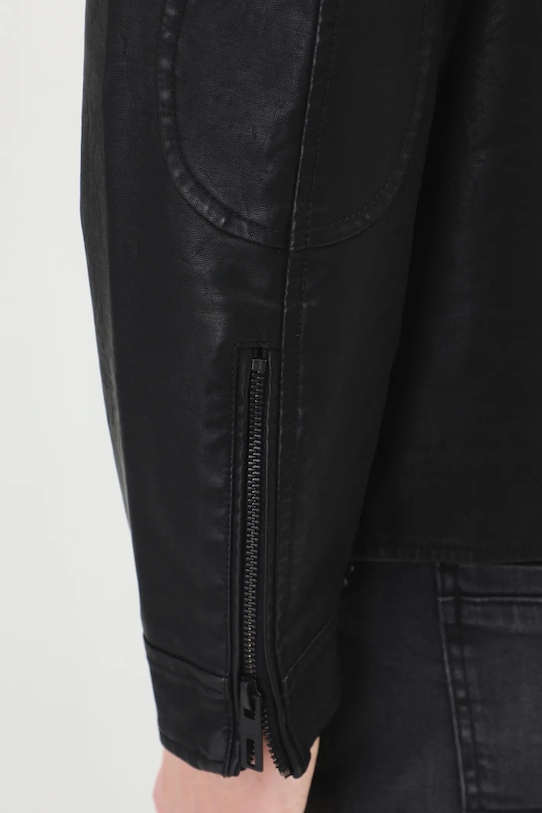 Куртка-косуха из коллекции Medicine. Модель без подкладки выполнена из экокожи. - Простой дизайн. - Длинный рукав. - Молнии по низу рукавов. - Модель с воротником-стойкой. - Застежка-молния и кнопки. - Два прорезных боковых кармана на молнии. - Внутренний карман. - Декоративная строчка. - Неутепленная модель с подкладкой. - Узорчатая подкладка. - Длина рукава: 67 см. - Длина: 72 см. - Ширина груди: 58 см. - Ширина плеч: 48 см. - Размеры указаны для размера: L.