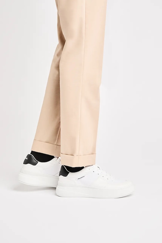 Кроссовки из коллекции Karl Lagerfeld. Изготовлены из комбинации текстиля, замши и натуральной кожи. - Круглый, жёсткий носок. - Внутренняя часть выполнена из биовег-материала Musika, который является экологичной альтернативой натуральной коже и содержит сырье биологического происхождения. - Удобная стелька. - Усиленный задник обеспечивает отличную поддержку лодыжки и пятки. - Классическая шнуровка позволяет индивидуально подогнать обувь по ноге. - Платформенная модель. - Устойчивая подошва.