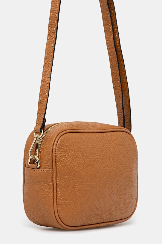 Небольшая сумочка из коллекции Answear LAB. Модель на молнии из натуральной кожи. - Застежка-молния. - Модель на подкладке. - Внутренний накладной карман. - Сумка для ношения в руке или на плече. - Присоединяемый длинный ремешок с регулировкой. - Не подходит для формата А4. - Входящий в комплект тканевый чехол защищает изделие от пыли. - Минимальная длина ремешка: 70 см. - Максимальная длина ремня: 125 см. - Глубина: 6 см. - Высота: 15 см. - Ширина у основания: 20 см.