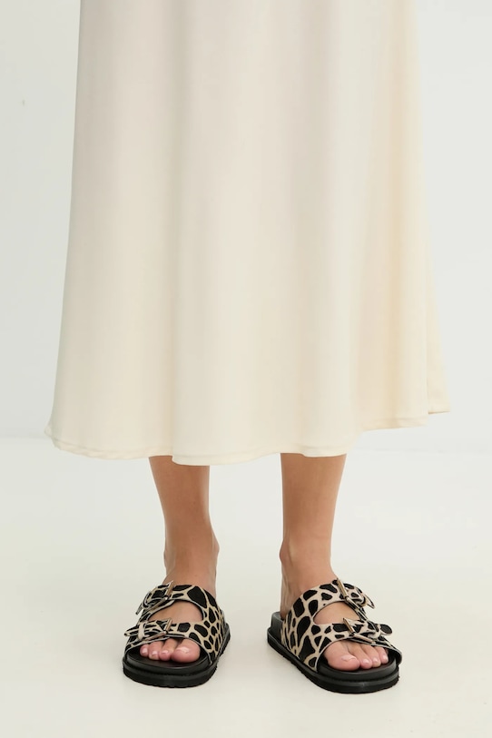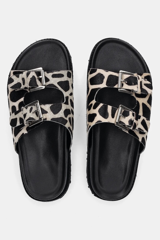Эти шлёпанцы из коллекции Answear.LAB изготовлены из натуральной щетины. Эти лёгкие и удобные слипоны идеально подходят для повседневной носки. - Регулируемые ремешки обеспечивают оптимальную посадку по ноге. - Кожаная стелька комфортна для стопы и предотвращает натирание, потертости и появление неприятного запаха. - Подошва из пеноматериала обеспечивает более мягкое ощущение и дополнительную амортизацию. - Модель на плоской подошве. - Длина вставки: 24 см. - Размеры указаны для размера: 39.