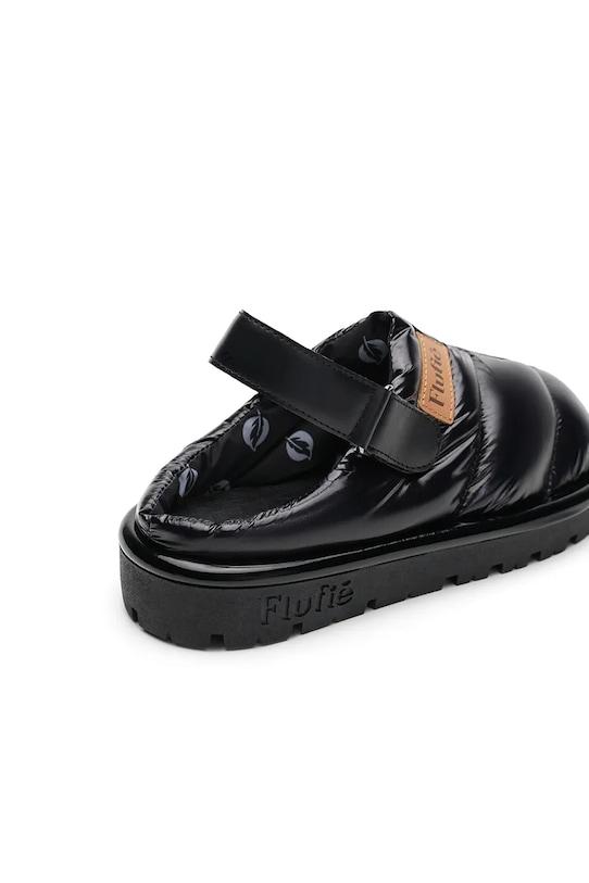 Тапочки из коллекции Flufie изготовлены из водонепроницаемого материала. Мягкая текстильная подкладка обеспечивает максимальный комфорт. - Круглый, мягкий нос. - Текстильная внутренняя часть комфортна для ног и облегчает содержание обуви в чистоте. - Застежка-липучка на пятке для легкой индивидуальной регулировки. - Водонепроницаемый верх. - Модель утеплена смесью гусиного пуха и микрогеля, что гарантирует тепло и комфорт. - Резиновая подошва чрезвычайно прочная и устойчивая к повреждениям.