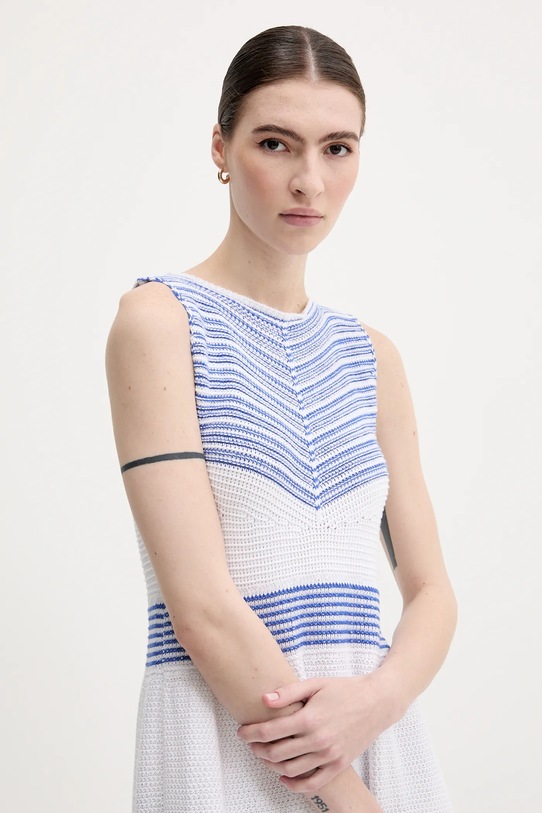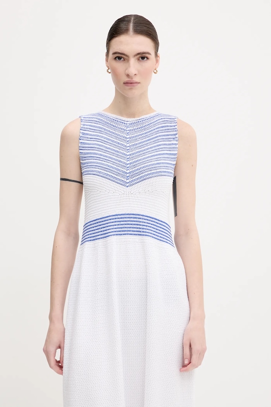 Это платье из коллекции United Colors of Benetton выполнено из эластичного трикотажа. Оно мягкое и приятное на ощупь. - Модель макси длины. - Простой дизайн. - Круглый вырез. - Модель без рукавов. - Длина: 134 см. - Ширина под мышками: 37 см. - Размеры указаны для размера: S.