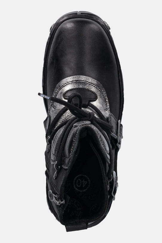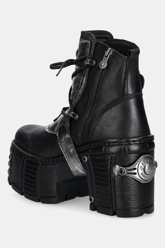 Эти ботинки из коллекции New Rock изготовлены из натуральной кожи. Верх из непористой ткани легко чистится влажной тканью. - Платформенная модель. - Модель с блочным каблуком. - Модель на шнуровке с застежкой-молнией сбоку. - Круглый, сильно заостренный нос. - Жесткий задник стабилизирует пятку и удерживает ногу в обуви, не давая ей выскальзывать во время движения. - Высота платформы: 7,5 см. - Высота каблука: 11,5 см. - Длина вставки: 26,5 см. - Размеры указаны для размера: 40.