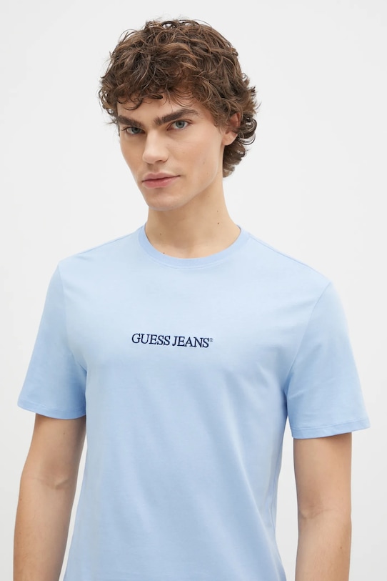 Футболка из коллекции Guess Jeans, выполненная из тонкой эластичной ткани. Эта модель выполнена из исключительно комфортного хлопкового материала. - Модель частично изготовлена из волокон, произведенных с использованием устойчивых производственных процессов, что позволяет снизить их воздействие на окружающую среду. - Обычная посадка. - Классический круглый вырез. - Короткий рукав. - Модель с аппликацией. - Длина: 68 см. - Ширина под мышками: 52 см. - Размеры указаны для размера: M.