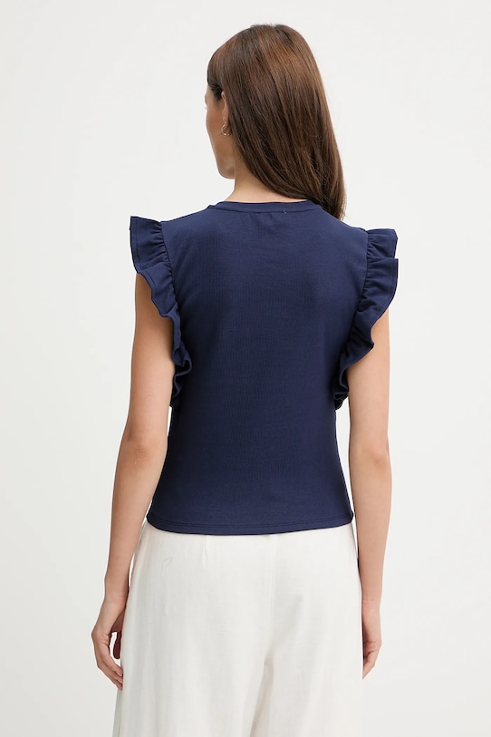 Этот трикотажный топ в рубчик из коллекции United Colors of Benetton изготовлен из дышащей ткани с высоким содержанием хлопка. - Приталенный крой. - Модель без рукавов. - Круглый ребристый вырез. - Модель выполнена из трикотажного полотна в рубчик. - Модель с декоративными оборками.