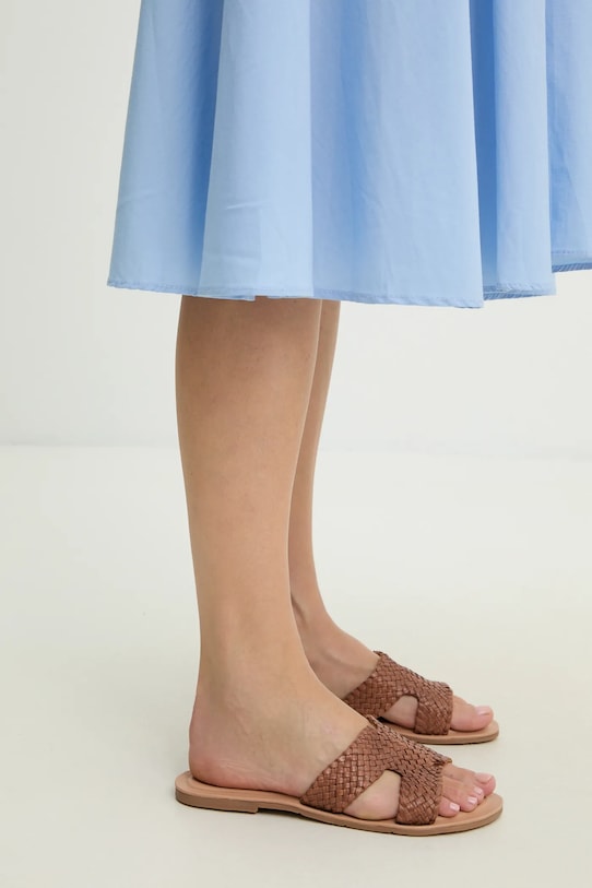Шлёпанцы из коллекции Answear.LAB из натуральной кожи. Лёгкие и удобные, эти слипоны идеально подойдут для повседневной носки. - Модель с кожаной внутренней частью, комфортной для стопы, предотвращающей натирание, потертости и появление неприятного запаха. - Профилированная стелька гарантирует комфорт использования. - Гибкая подошва обеспечивает высокий комфорт использования. - Резиновая подошва прочная и устойчивая к повреждениям. - Длина вставки: 25 см. - Размеры указаны для размера: 39.
