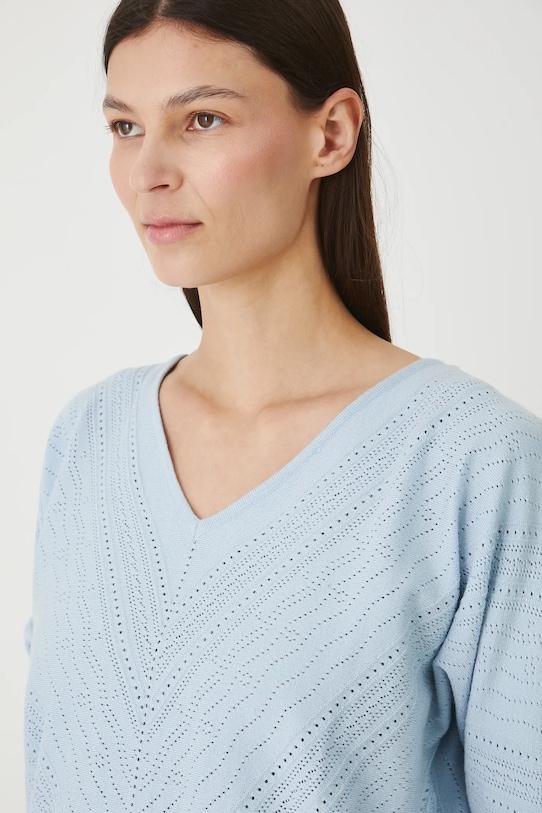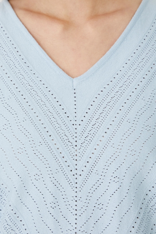 Свитер из коллекции Medicine. С острым вырезом и ажурным трикотажем. - Материал с сертификатом OEKO-TEX Standard 100 гарантирует, что текстильные изделия, на которых он нанесен, не содержат вредных и потенциально опасных для человека и окружающей среды веществ. - Обычная посадка. - Рукав три четверти. - Рукав кимоно. - Острый вырез. - Отделка ребер. - Модель выполнена из ажурного материала. - Длина рукава (от горловины): 51 см. - Длина: 60 см. - Размеры указаны для размера: S.