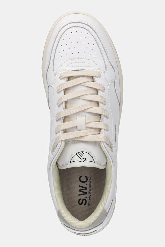 Эти кроссовки из коллекции Stepney Workers Club изготовлены из комбинации натуральной кожи и текстиля. Они оснащены прочной и износостойкой резиновой подошвой. - Круглый, слегка утолщенный носок. - Усиленный задник обеспечивает отличную поддержку лодыжки и пятки. - Плоские шнурки устраняют давление на подъем стопы, обеспечивая хорошую посадку и комфорт. - Текстильная внутренняя часть комфортна для ног и облегчает содержание обуви в чистоте. - Резиновая подошва прочная и устойчивая к повреждениям.