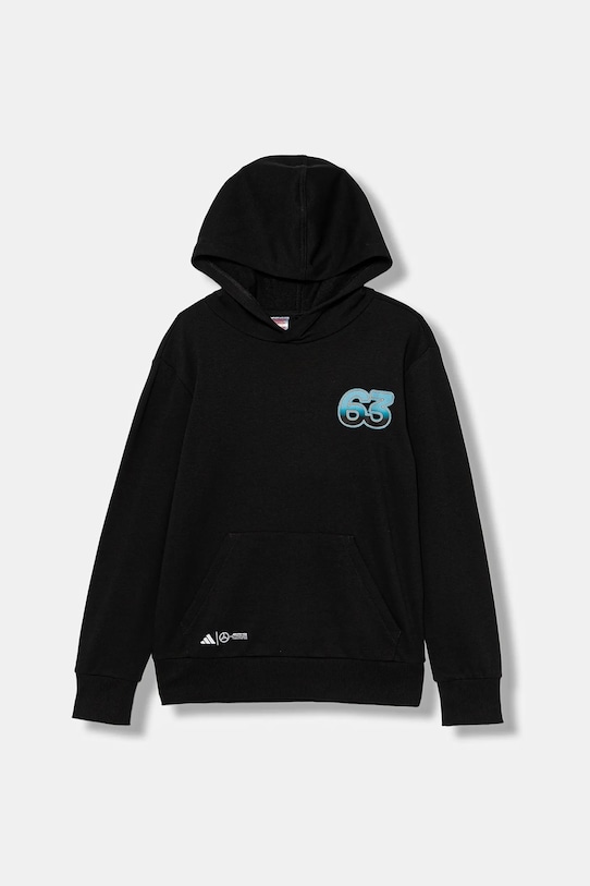 Детская толстовка с капюшоном из коллекции adidas Performance из слегка эластичного трикотажного полотна. - Свободный крой, обеспечивающий полную свободу движений. - Заниженная линия плеча. - Модель с капюшоном. - Практичный вставной карман-кенгуру спереди. - Рукава и нижний край отделаны удобными эластичными манжетами. - Модель с принтом на груди и спине. - Длина рукава (от капюшона): 73 см. - Длина: 66 см. - Ширина под мышками: 47 см. - Размеры указаны для роста: 164 см.
