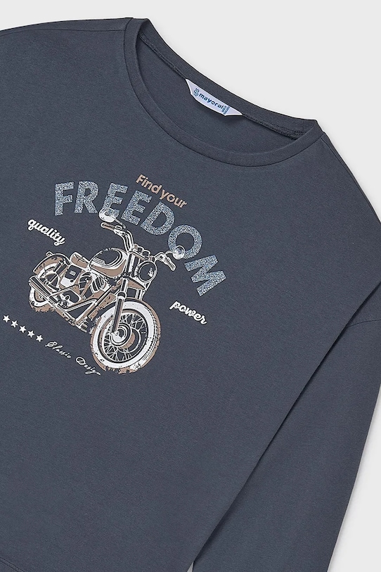 Детский лонгслив из коллекции Mayoral выполнен из тонкого эластичного трикотажа. Модель выполнена из дышащего хлопкового материала. - Модель изготовлена из хлопка, произведенного с использованием устойчивых производственных процессов, что позволяет снизить воздействие на окружающую среду. - Свободный крой, обеспечивающий полную свободу движений. - Круглый ребристый вырез. - Длинный рукав. - Крой рукава со спущенной линией плеча не ограничивает подвижность. - Трикотаж с набивным рисунком.