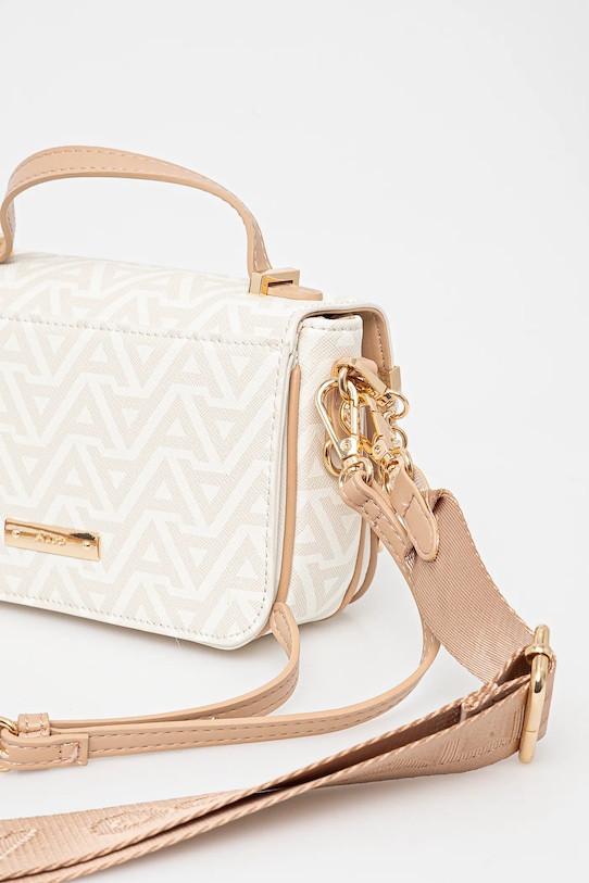 Небольшая сумочка из коллекции Aldo. Модель на молнии, выполнена из экокожи. - Внутренняя часть частично изготовлена из переработанных волокон. - Имеет ручку и съемный регулируемый ремень. - Имеет три отделения, одно из которых застегивается на молнию. - Модель с декоративной цепочкой. - Клапан застегивается на магнит. - Имеет два внутренних кармана: один прорезной, другой на молнии. - Не подходит для формата А4. - Ширина у основания: 21 см. - Высота: 12 см. - Глубина: 9 см.