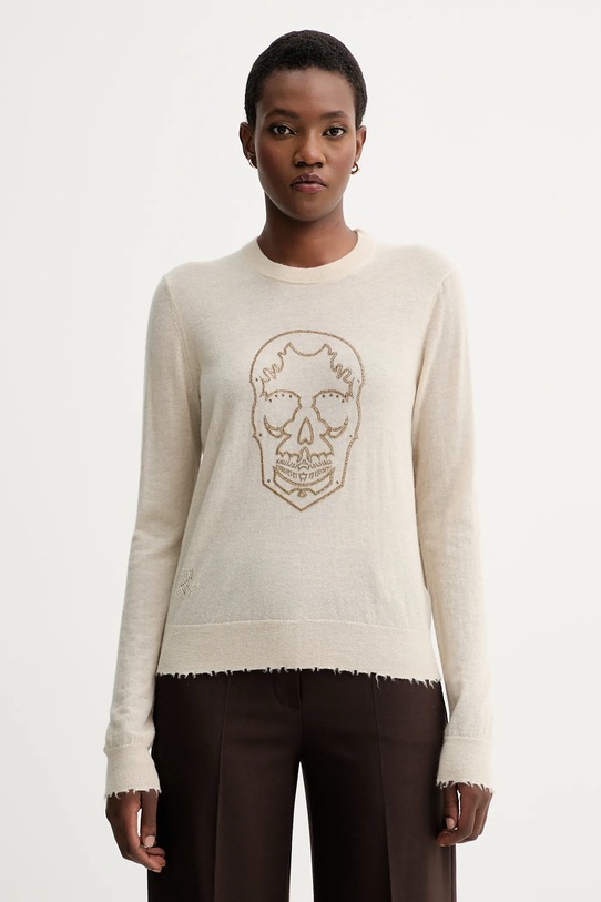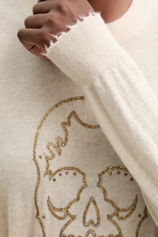 Этот свитер из коллекции ZADIG&VOLTAIRE связан из тонкой пряжи. Кашемировая шерсть обладает отличными терморегулирующими свойствами, отличается исключительной лёгкостью и пушистостью. - Модель с декоративной бахромой. - Простой дизайн, не стесняющий движений. - Классический круглый вырез. - Рукава и нижний край отделаны удобными эластичными манжетами. - Модель с аппликацией. - Длина рукава: 66 см. - Длина: 56 см. - Ширина под мышками: 45 см. - Размеры указаны для размера: S.