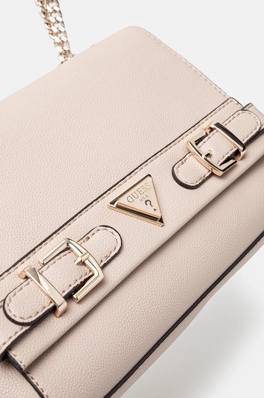 Небольшая сумочка из коллекции Guess. Модель на молнии, выполнена из экокожи. - Клапан застегивается на магнит. - Имеет внутренний карман на молнии и отделения для карт. - Карман спереди. - Модель оснащена металлическими ножками, защищающими дно сумки. - Несъемный, нерегулируемый ремешок. - Не подходит для формата А4. - Входящий в комплект тканевый чехол защищает изделие от пыли. - Длина ремешка: 122 см. - Глубина: 6 см. - Высота: 16 см. - Ширина у основания: 26 см.