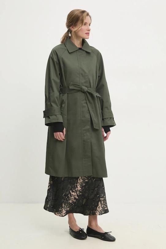Это пальто из коллекции Answear.LAB. Модель без подкладки выполнена из гладкой ткани. Содержание полиэстера делает материал менее мнущимся. - Свободный крой, обеспечивающий полную свободу движений. - Молния по всей длине с пристегивающейся ветрозащитной планкой. - Рукава реглан благодаря своей конструкции обеспечивают большую свободу движений. - Модель с воротником. - Два боковых накладных кармана. - Текстильный ремешок в комплекте. - Дополнительный слой материала в виде подкладки.