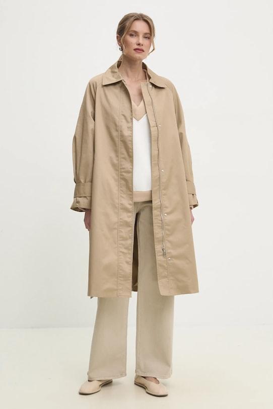Это пальто из коллекции Answear.LAB. Модель без подкладки выполнена из гладкой ткани. Содержание полиэстера делает материал менее мнущимся. - Свободный крой, обеспечивающий полную свободу движений. - Молния по всей длине с пристегивающейся ветрозащитной планкой. - Рукава реглан благодаря своей конструкции обеспечивают большую свободу движений. - Модель с воротником. - Два боковых накладных кармана. - Текстильный ремешок в комплекте. - Дополнительный слой материала в виде подкладки.