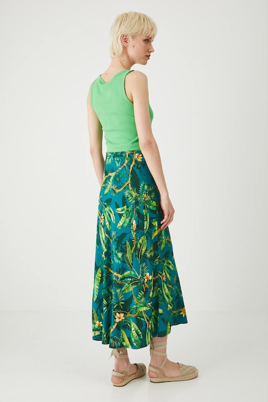 Юбка из коллекции «Медицина». Расклешенный фасон из узорчатой ткани. - Материал с сертификатом OEKO-TEX Standard 100 гарантирует, что текстильные изделия, на которых он нанесен, не содержат вредных и потенциально опасных для человека и окружающей среды веществ. - Расклешенный крой. - Эластичный пояс. - Узорчатая ткань. - Узор с растительным мотивом. - Модель макси длины. - Ширина талии: 36 см. - Длина спереди: 84 см. - Длина спинки: 86 см. - Размеры указаны для размера: S.
