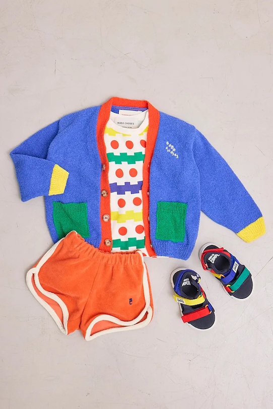 Детские шорты из коллекции Bobo Choses. Изготовлены из слегка эластичной ткани. - Модель частично изготовлена из переработанного хлопка. Этот продукт частично изготовлен из сертифицированного органического хлопка, выращенного и собранного с растений, не содержащих ГМО, без использования удобрений и пестицидов. Процесс производства органического хлопка более экологичен, а изделия из него полезнее для здоровья. - Простой дизайн, не стесняющий движений. - Обхват талии обычный. - Эластичный пояс.