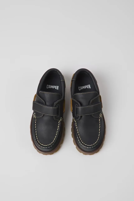Детские мокасины из коллекции Camper. Изготовлены из натуральной кожи. - Жесткий верх обеспечивает устойчивость. - Круглый нос. - Жесткий задник стабилизирует пятку и удерживает ногу в обуви, не давая ей выскальзывать во время движения. - Застежка-липучка позволяет легко надевать и снимать обувь. - Декоративные детали. - Модель с кожаной внутренней частью, комфортной для стопы, предотвращающей натирание, потертости и появление неприятного запаха. - Модель с текстильной подкладкой.