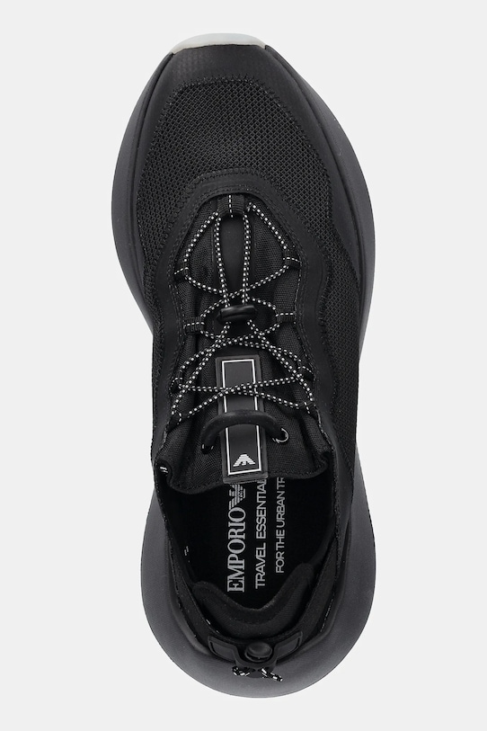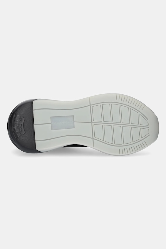 Кроссовки из коллекции Emporio Armani. Изготовлены из комбинации текстиля и синтетических материалов. - Промежуточная подошва из легкой и гибкой пены EVA обеспечивает оптимальную амортизацию. - Эластичные шнурки позволяют легко надевать и снимать обувь. - Круглый, мягкий нос. - Усиленный задник с мягким наполнителем защищает пятку от истирания. - Резиновая подошва прочная и устойчивая к повреждениям. - Текстильная внутренняя часть комфортна для ног и облегчает содержание обуви в чистоте.