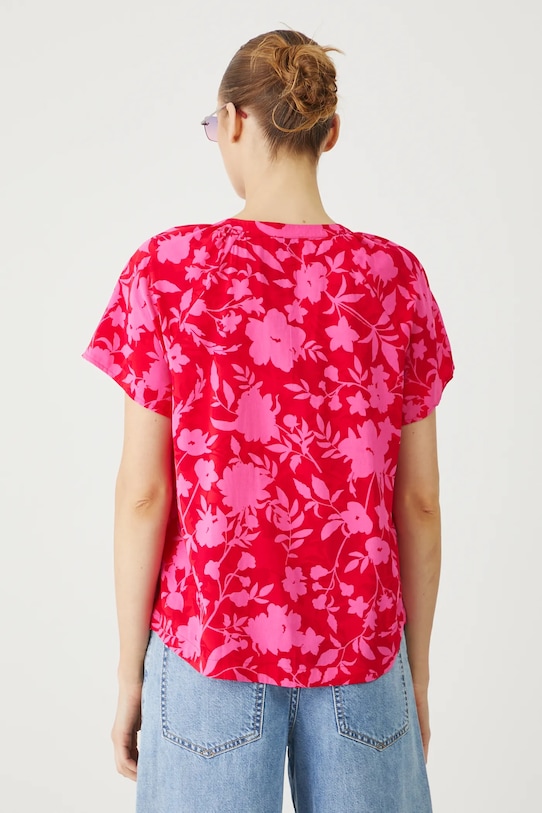 Эта блузка из коллекции Medicine выполнена из узорчатой ткани и имеет заостренный вырез. - Материал с сертификатом OEKO-TEX Standard 100 гарантирует, что текстильные изделия, на которых он нанесен, не содержат вредных и потенциально опасных для человека и окружающей среды веществ. - Обычная посадка. - Короткие рукава реглан. - Острый вырез. - Застежка на пуговицы. - Узорчатая ткань. - Цветочный узор. - Длина: 63 см. - Ширина груди: 55 см. - Размеры указаны для размера: S.
