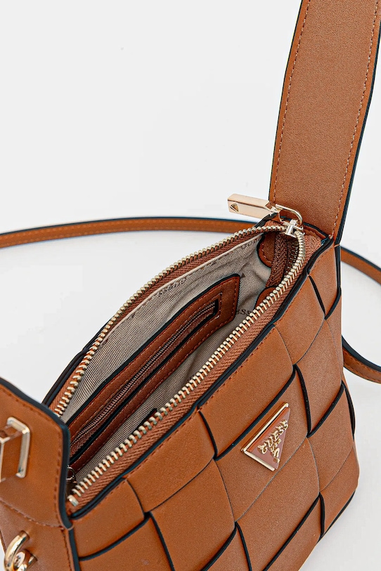 Небольшая сумочка из коллекции Guess. Модель на молнии, выполнена из экокожи. - Отделение на молнии. - Внутренний карман на молнии. - Имеет внутренние отделения для карт. - Модель на подкладке. - Не подходит для формата А4. - Имеет ручку и съемный регулируемый ремень. - Количество слотов для карт: 3. - Глубина: 10 см. - Высота: 13 см. - Ширина у основания: 18 см. - Длина ручки: 34 см. - Минимальная длина ремешка: 112 см. - Максимальная длина ремня: 127 см.