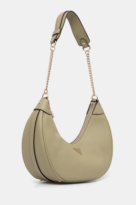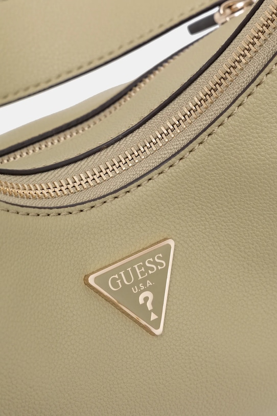 Небольшая сумочка из коллекции Guess. Модель на молнии, выполнена из экокожи. - Застежка-молния. - Имеет два внутренних кармана: один прорезной, другой на молнии. - Модель на подкладке. - Не подходит для формата А4. - Длинная ручка для удобной переноски в руке или на плече. - Модель оснащена металлическими ножками, защищающими дно сумки. - Входящий в комплект тканевый чехол защищает изделие от пыли. - Глубина: 12,5 см. - Высота: 13,5 см. - Ширина у основания: 24,5 см.