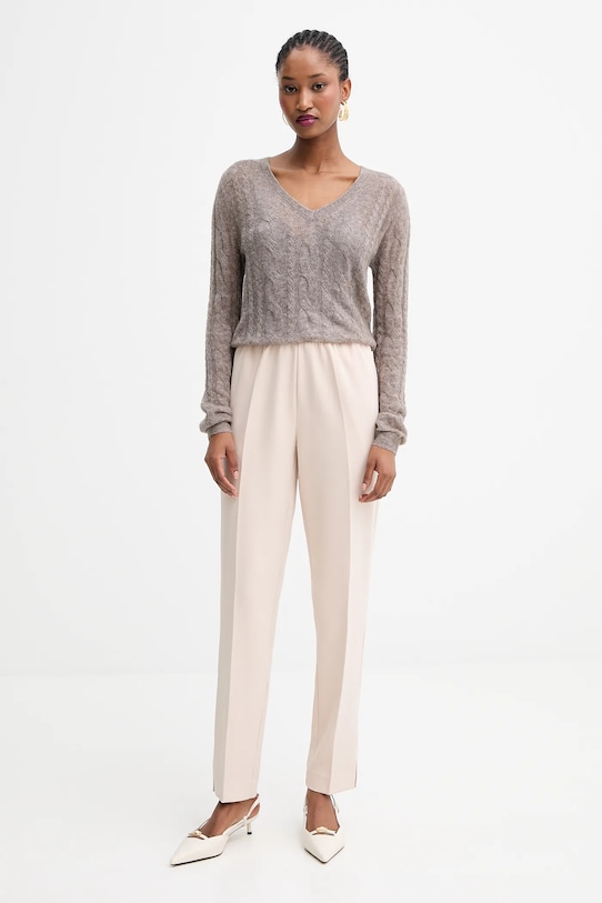 Эти брюки из коллекции Guess выполнены из тонкой, слегка эластичной ткани. Содержание полиэстера делает материал менее мнущимся. - Содержит переработанный пластик. - Коническая ножка. - Эластичный пояс. - Штанина отутюживается в складку. - Два боковых накладных кармана. - Ширина талии: 37 см. - Ширина бедер: 52 см. - Высота талии: 28 см. - Ширина штанины внизу: 16 см. - Ширина штанины: 27 см. - Длина по внутреннему шву: 72 см. - Размеры указаны для размера: S.