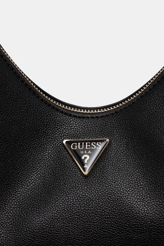 Небольшая сумочка из коллекции Guess. Модель на молнии, выполнена из экокожи. - Застежка-молния. - Имеет два внутренних кармана: один прорезной, другой на молнии. - Модель на подкладке. - Не подходит для формата А4. - Длинная ручка для удобной переноски в руке или на плече. - Модель оснащена металлическими ножками, защищающими дно сумки. - Входящий в комплект тканевый чехол защищает изделие от пыли. - Глубина: 12,5 см. - Высота: 13,5 см. - Ширина у основания: 24,5 см.