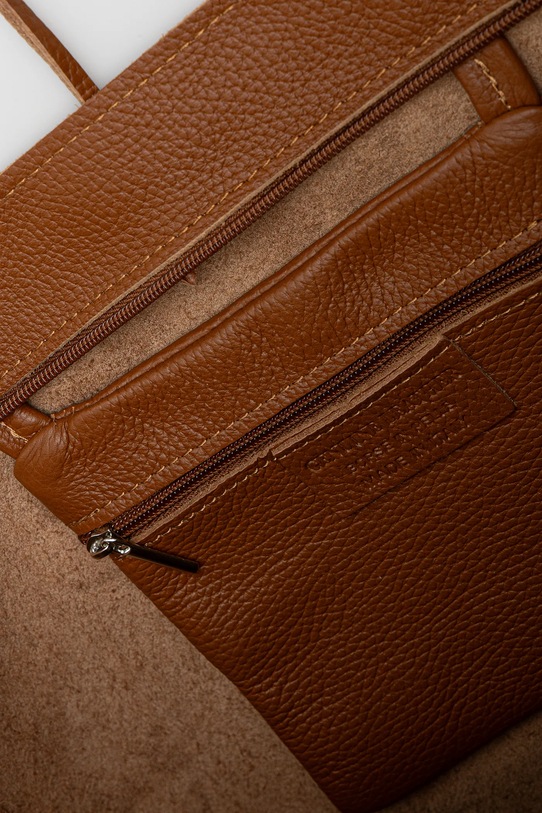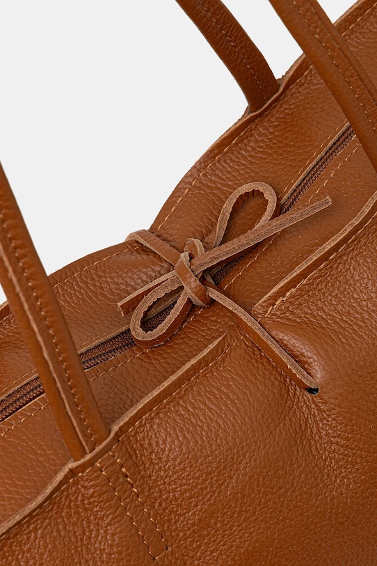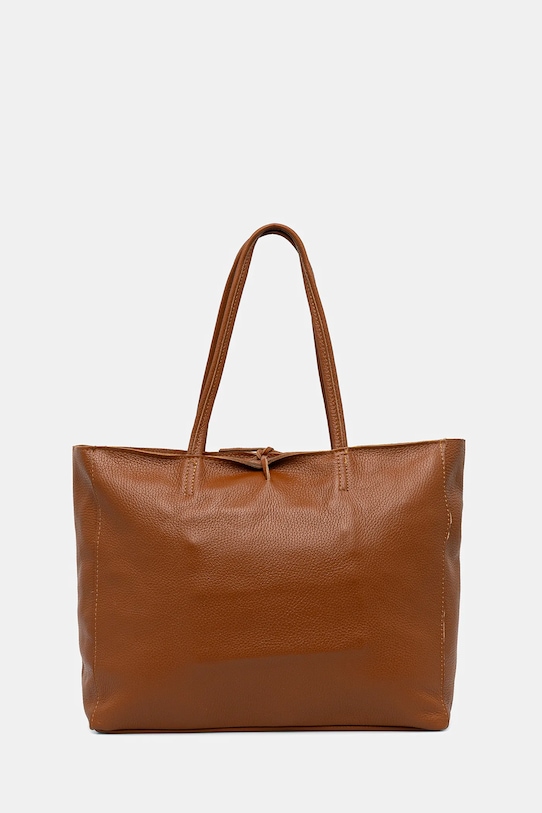 Большая сумка из коллекции Answear.LAB. Модель на молнии из натуральной кожи. - Отделение с завязкой и застежкой-молнией. - Модель без подкладки. - Усиленное дно сумки позволяет изделию долго сохранять форму. - Внутренний карман на молнии. - Длинные ручки для удобной переноски в руке или на плече. - Вмещает формат А4. - Входящий в комплект тканевый чехол защищает изделие от пыли. - Длина ручки: 55 см. - Глубина: 12 см. - Высота: 30 см. - Ширина у основания: 36 см.