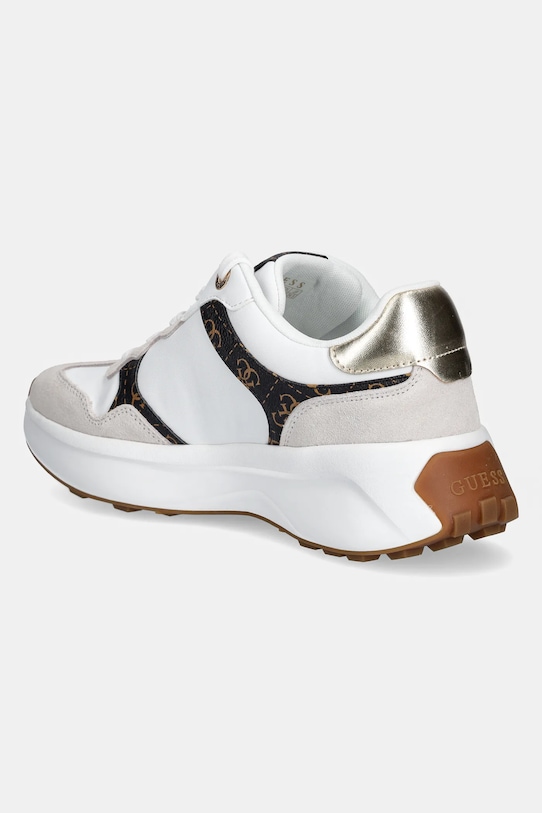 Кроссовки из коллекции Guess. Изготовлены из комбинации натуральной и искусственной кожи. - Сужающийся, слегка заостренный нос. - Жесткий задник стабилизирует пятку и удерживает ногу в обуви, не давая ей выскальзывать во время движения. - Текстильная внутренняя часть комфортна для ног и облегчает содержание обуви в чистоте. - Резиновая рифленая подошва долговечна и обеспечивает хорошее сцепление. - Плоские шнурки устраняют давление на подъем стопы, обеспечивая хорошую посадку и комфорт.