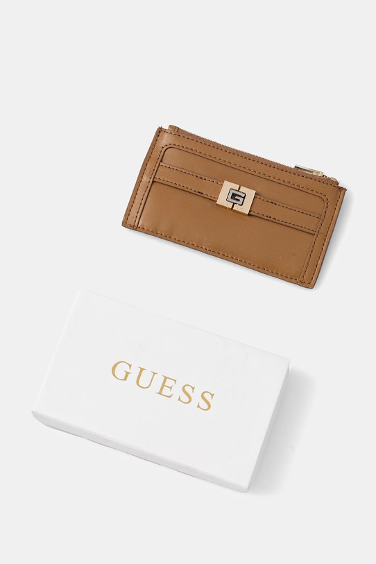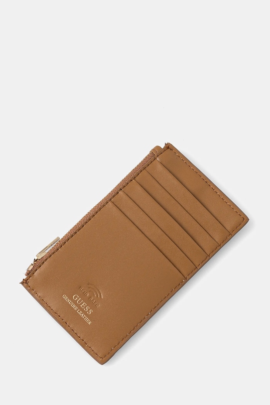 Маленький кошелек из коллекции Guess. Изготовлен из натуральной кожи. - Использование соответствующих материалов обеспечивает защиту от технологии RFID, которая использует радиоволны для удалённого считывания данных. Это гарантирует безопасность информации, хранящейся на транспортируемых носителях, таких как банковские карты или паспорта. - Отделения для карт. - Карман для монет на молнии. - Модель упакована в фирменную коробку. - Количество слотов для карт: 5. - Размеры: 7 х 13 см.