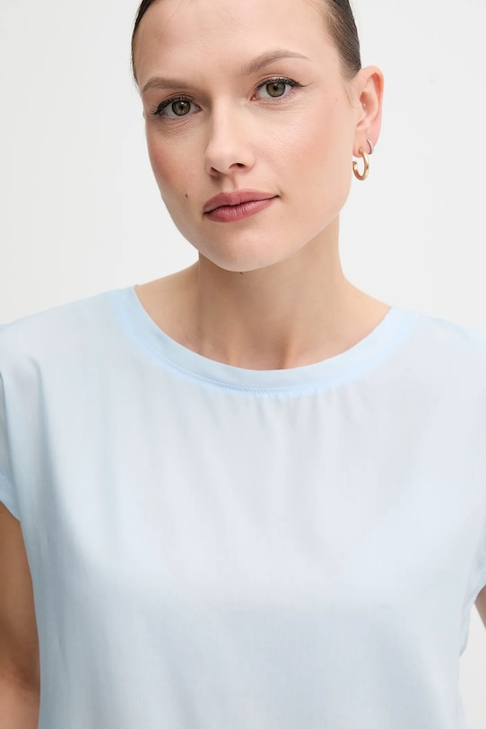 Эта блузка из коллекции United Colors of Benetton выполнена из тонкой, неэластичной ткани. Модель выполнена из исключительно комфортного материала с высоким содержанием лиоцелла. - Свободный крой, обеспечивающий полную свободу движений. - Классический круглый вырез. - Короткий рукав.