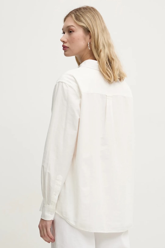 Эта рубашка Tommy Jeans выполнена из гладкой ткани. Этот лёгкий материал идеально подходит для тёплого времени года. - Свободный покрой, не стесняющий движений. - Модель с воротником. - Длинный рукав. - Крой рукава со спущенной линией плеча не ограничивает подвижность. - Манжеты на пуговицах. - Удобная застежка на кнопки позволяет легко надевать и снимать. - Длина рукава (от воротника): 75 см. - Длина: 71 см. - Ширина под мышками: 59 см. - Размеры указаны для размера: S.
