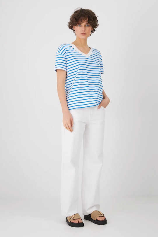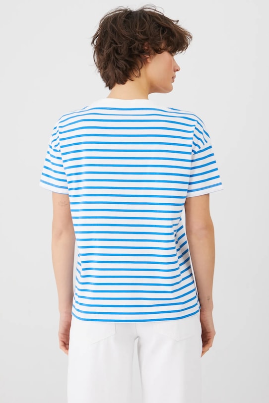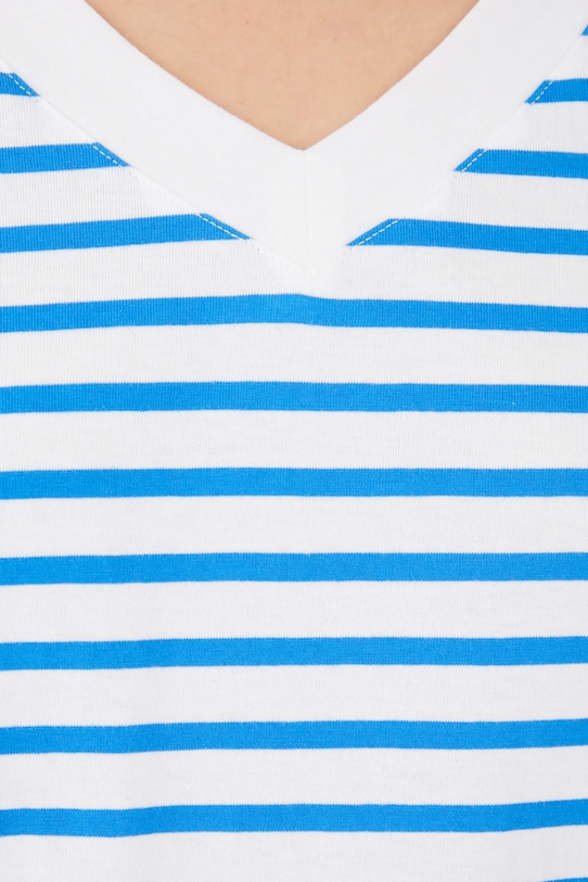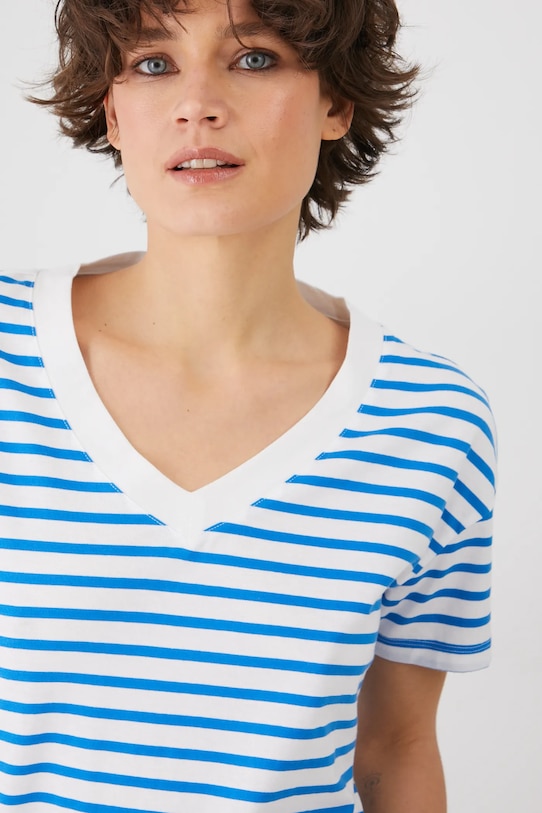 Футболка из коллекции «Медицина». Изготовлена из хлопкового трикотажа. - Материал с сертификатом OEKO-TEX Standard 100 гарантирует, что текстильные изделия, на которых он нанесен, не содержат вредных и потенциально опасных для человека и окружающей среды веществ. - Обычная посадка. - Короткий рукав. - Заниженная линия плеча. - Острый вырез. - Узорчатое трикотажное полотно. - Полосатый рисунок. - Длина: 64 см. - Ширина под мышками: 54 см. - Размеры указаны для размера: S.