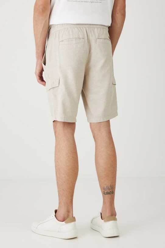 Шорты из коллекции «Медицина». Изготовлены из меланжевой ткани. - Льняной материал обеспечивает комфорт и воздухопроницаемость. - Обычная посадка. - Эластичный пояс. - Накладные карманы. - Карманы для груза. - Меланжевая ткань. - Ширина талии (до растягивания): 41 см. - Ширина талии (после растяжения): 51,5 см. - Ширина бедер: 55,7 см. - Высота талии: 28,5 см. - Ширина штанины внизу: 27 см. - Длина по внутреннему шву: 24 см. - Размеры указаны для размера: M.