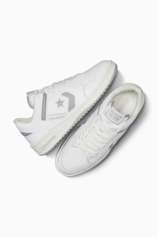 Кеды из коллекции Converse из натуральной кожи. Модель оснащена прочной и износостойкой резиновой подошвой. - Амортизация из пеноматериала CX обеспечивает высочайший уровень комфорта. - Классическая шнуровка позволяет индивидуально подогнать обувь по ноге. - Плоские шнурки устраняют давление на подъем стопы, обеспечивая хорошую посадку и комфорт. - Текстильная внутренняя часть комфортна для ног и облегчает содержание обуви в чистоте. - Резиновая подошва прочная и устойчивая к повреждениям.