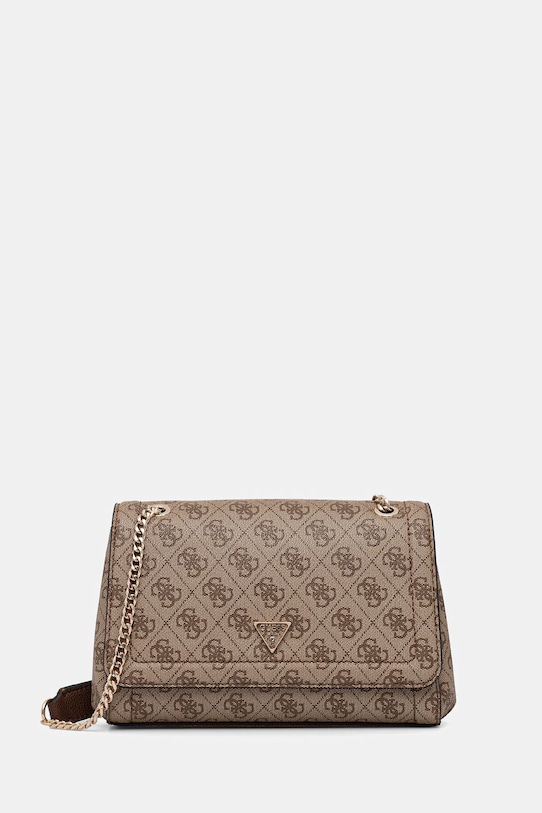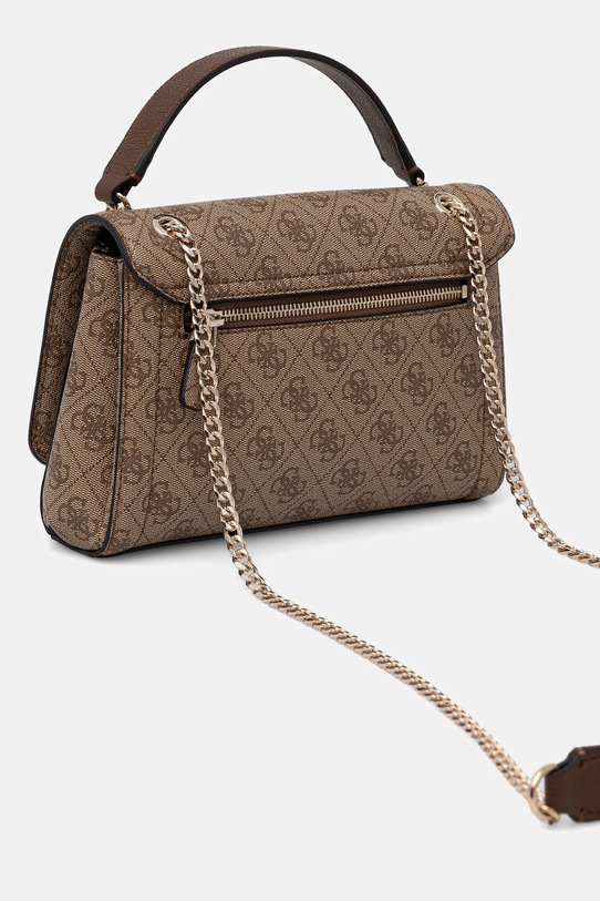 Сумка среднего размера из коллекции Guess. Модель на молнии, выполнена из экокожи. - Входящий в комплект тканевый чехол защищает изделие от пыли. - Клапан застегивается на магнит. - Имеет три отделения. - Отделения для карт. - Внутренний карман на молнии. - Не подходит для формата А4. - Карман на молнии на задней стороне позволяет безопасно хранить мелкие предметы. - Несъемный, регулируемый ремешок. - Глубина: 6 см. - Высота: 15 см. - Ширина у основания: 23 см.