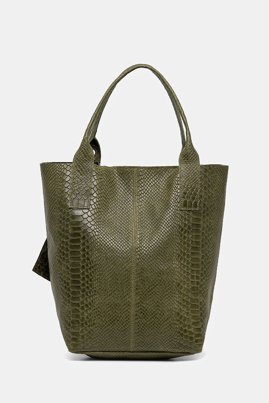Сумка среднего размера из коллекции Answear.LAB. Модель на молнии, выполнена из натуральной кожи. - Застежка-молния. - Внутренних карманов нет. - Съемный мешочек позволяет хранить необходимые предметы. - Длинная ручка для удобной переноски в руке или на плече. - Модель без подкладки. - Не подходит для формата А4. - Входящий в комплект тканевый чехол защищает изделие от пыли. - Длина ручки: 46 см. - Глубина: 18 см. - Высота: 34,5 см. - Ширина у основания: 25 см.