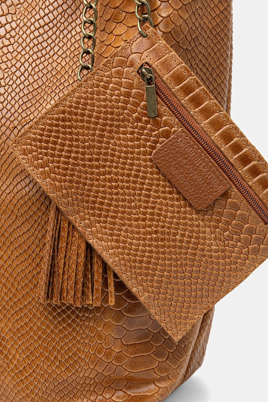 Сумка среднего размера из коллекции Answear.LAB. Модель на молнии, выполнена из натуральной кожи. - Застежка-молния. - Внутренних карманов нет. - Съемный мешочек позволяет хранить необходимые предметы. - Длинная ручка для удобной переноски в руке или на плече. - Модель без подкладки. - Не подходит для формата А4. - Входящий в комплект тканевый чехол защищает изделие от пыли. - Длина ручки: 46 см. - Глубина: 18 см. - Высота: 34,5 см. - Ширина у основания: 25 см.