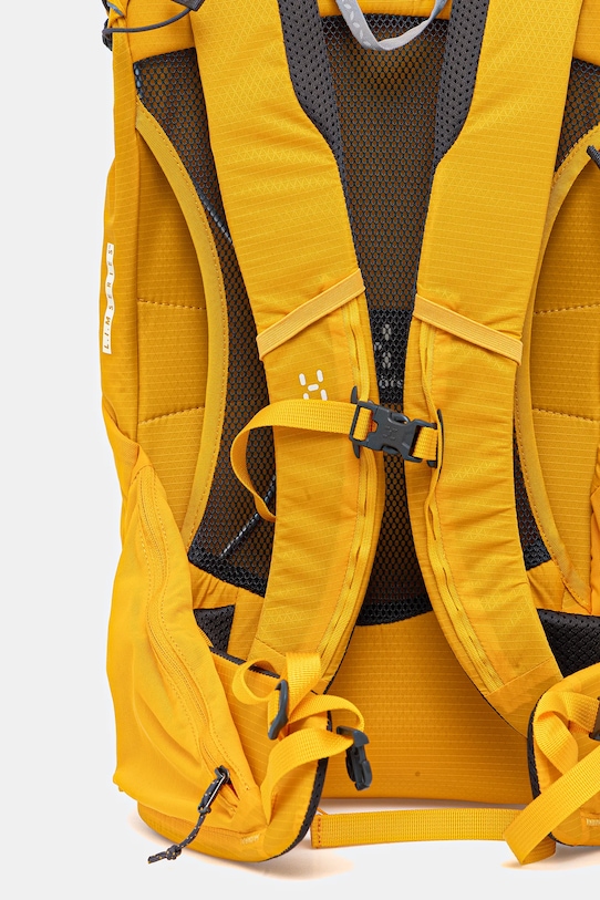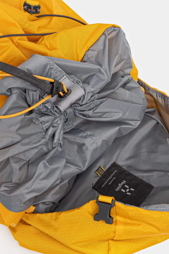 Рюкзак из коллекции Haglöfs. Изготовлен из текстильного материала. - Отделение затягивается шнурками и застегивается на пряжки. - Количество внешних карманов на молнии: 2. - Дышащая подкладка в области спины обеспечивает охлаждение и правильную циркуляцию воздуха. - Внутренний накладной карман для удобного и безопасного хранения телефона и других мелких предметов. - Вмещает формат А4. - Модель на подкладке. - Глубина: 16 см. - Высота: 46/64 см. - Ширина у основания: 28 см.