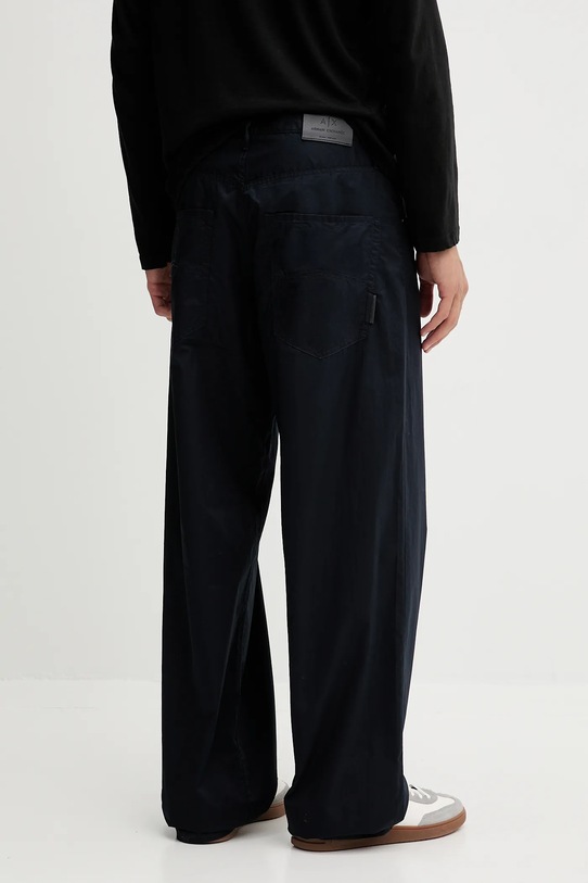 Брюки из коллекции Armani Exchange из тонкой, неэластичной ткани. Модель выполнена из исключительно комфортного хлопкового материала. - Простой дизайн, не стесняющий движений. - Застежка на пуговицы. - Три накладных кармана спереди. - Два накладных кармана на ягодицах. - Ширина талии: 44 см. - Ширина бедер: 56 см. - Высота талии: 31 см. - Ширина штанины снизу: 25 см. - Ширина штанины: 34 см. - Длина по внутреннему шву: 86 см. - Размеры указаны для размера: 32.