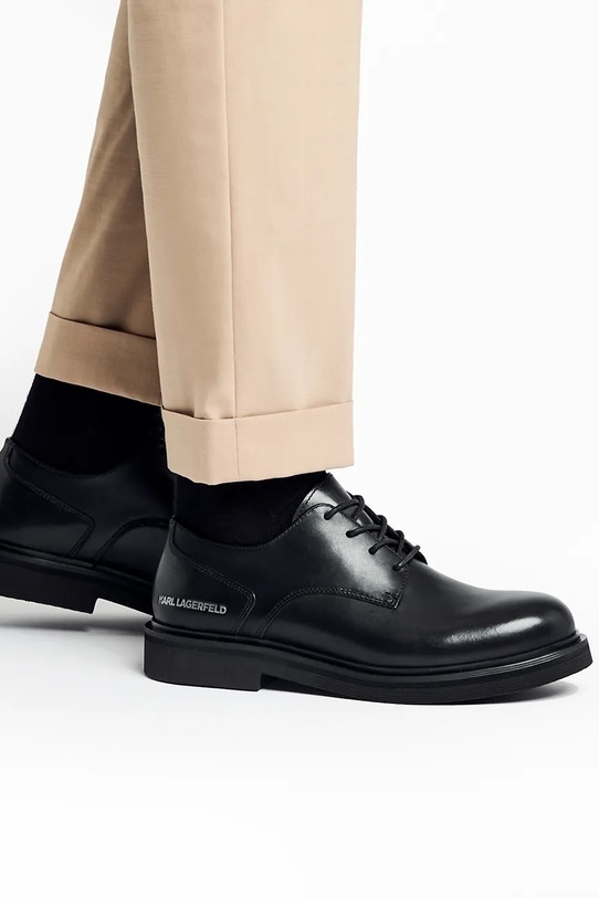 Эти туфли из коллекции Karl Lagerfeld изготовлены из натуральной кожи. Они легко чистятся и ухаживаются. - Круглый нос. - Жесткий задник стабилизирует пятку и удерживает ногу в обуви, не давая ей выскальзывать во время движения. - Модель с кожаной внутренней частью, комфортной для стопы, предотвращающей натирание, потертости и появление неприятного запаха. - Резиновая подошва прочная и устойчивая к повреждениям. - Классическая шнуровка позволяет индивидуально подогнать обувь по ноге.