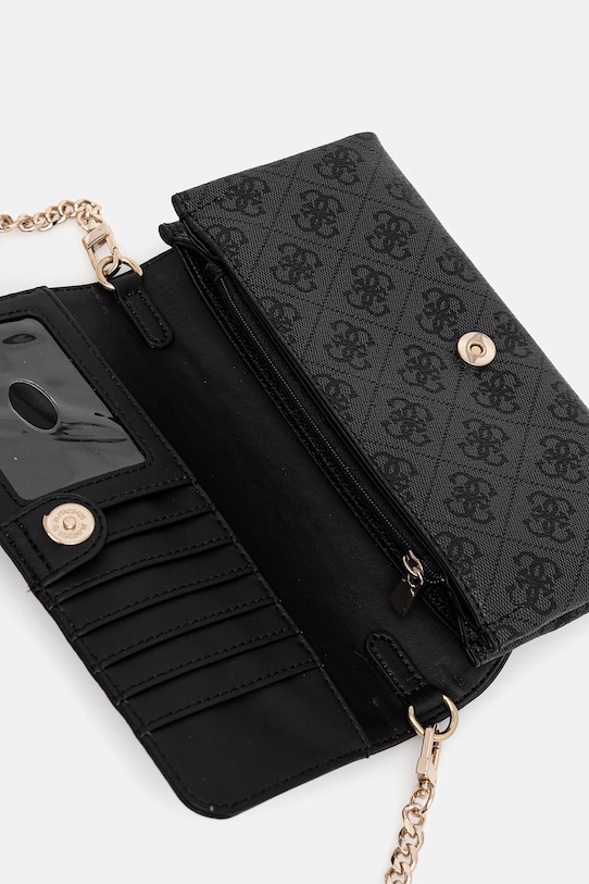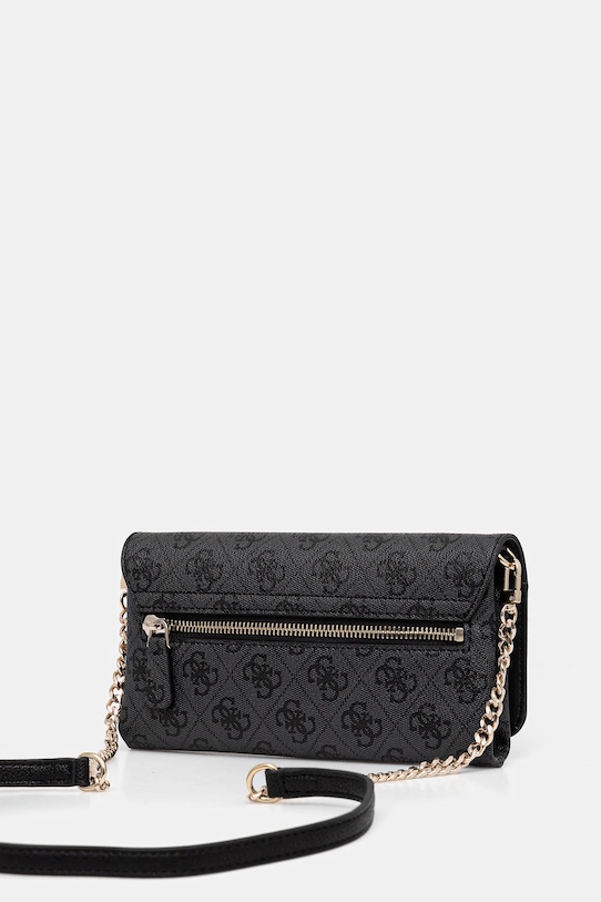 Небольшая сумочка из коллекции Guess. Модель на молнии, выполнена из экокожи. - Содержит переработанный пластик. - Клапан застегивается на магнит. - Не подходит для формата А4. - Съемный регулируемый ремешок. - Количество внутренних отделений: 2. - Количество внутренних карманов на молнии: 1. - Количество слотов для карт: 9. - Минимальная длина ремня: 105 см. - Максимальная длина ремня: 125 см. - Глубина: 3 см. - Высота: 12 см. - Ширина у основания: 21 см.