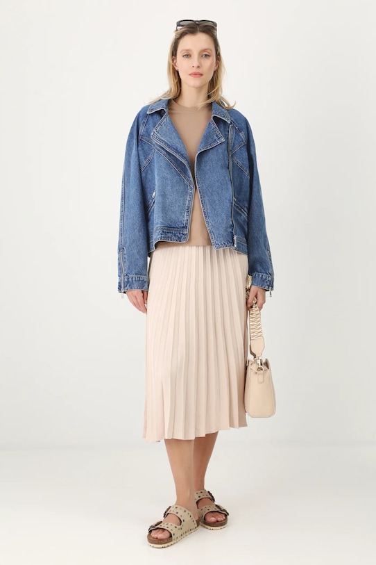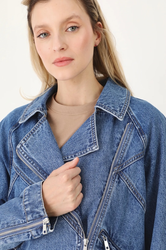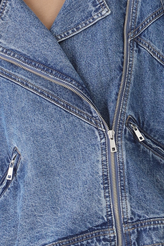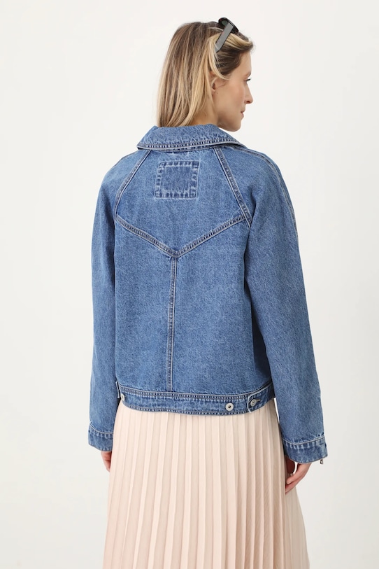 Куртка из коллекции Medicine. Модель без подкладки выполнена из хлопкового денима. - Обычная посадка. - Длинные рукава реглан. - Молнии по низу рукавов. - Застежка-молния. - Регулировка ширины талии с помощью кнопок. - Два прорезных боковых кармана на молнии. - Неутепленная модель без подкладки. - Слегка выстиранный деним. - Декоративная строчка. - Длина рукава (от воротника): 74 см. - Длина: 57 см. - Ширина груди: 53 см. - Размеры указаны для размера: S.