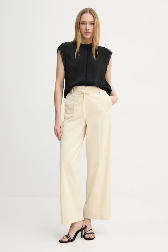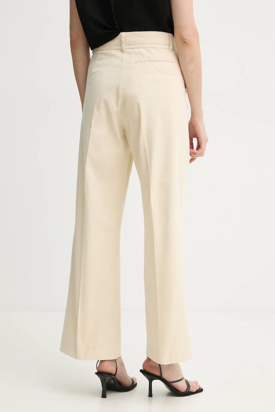 Брюки из коллекции Birger et Mikkelsen Day, выполненные из гладкой ткани. Изготовлены из исключительно комфортного хлопка. - Простой дизайн, не стесняющий движений. - Застежка на молнию, пуговицы и крючок. - Два накладных кармана спереди. - Тонкая, неэластичная ткань. - Ширина бедер: 45 см. - Ширина талии: 38 см. - Высота талии: 31 см. - Ширина штанины внизу: 27 см. - Ширина штанины: 30 см. - Размеры указаны для размера: 36. - Длина внешней части штанины: 106 см.