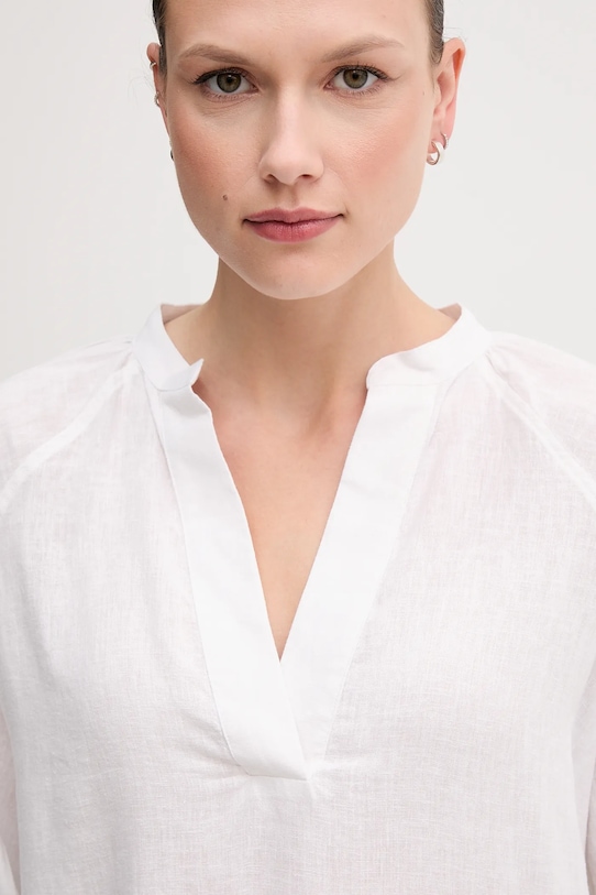 Эта блузка из коллекции Gant выполнена из тонкой, слегка эластичной ткани. Модель выполнена из воздушного, дышащего материала с высоким содержанием льна. - Свободный крой, обеспечивающий полную свободу движений. - Декоративный, заостренный вырез. - Рукава реглан благодаря своей конструкции обеспечивают большую свободу движений. - Рукава три четверти с удобной эластичной манжетой. - Гладкая ткань. - Длина: 64 см. - Ширина под мышками: 58 см. - Размеры указаны для размера: 36.