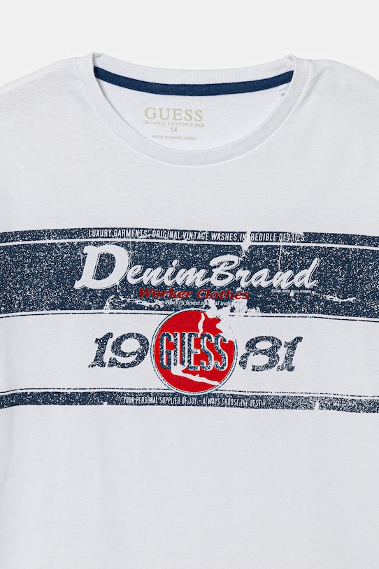 Эта детская футболка из коллекции Guess выполнена из тонкой, эластичной ткани на основе дышащего хлопка. - Органический хлопок выращивается без использования вредных химикатов, химических пестицидов и искусственных удобрений. - Простой дизайн, не стесняющий движений. - Классический круглый вырез. - Плоские швы защищают кожу от ссадин и раздражения. - Модель с печатью и аппликацией. - Длина: 63,5 см. - Ширина под мышками: 44,5 см. - Размеры указаны для роста: 158-166 см.
