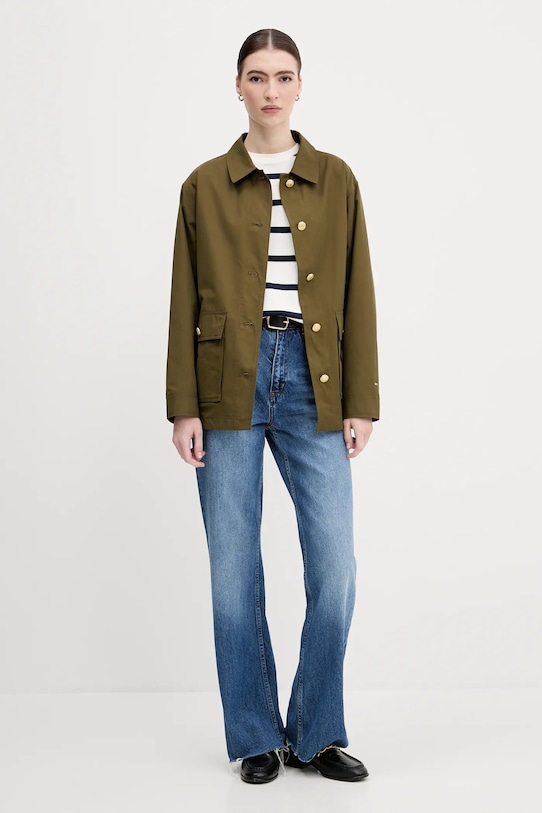 Эта куртка из коллекции Tommy Hilfiger без подкладки выполнена из гладкой ткани. Модель обладает повышенной водонепроницаемостью, что делает её идеальной для ненастной погоды. - Простой дизайн, не стесняющий движений. - Неутепленная модель без подкладки. - Модель с воротником. - Однобортный пиджак с застежкой на пуговицы. - Пояс на талии. - Внешние карманы на молнии. - Длина: 70 см. - Ширина под мышками: 57 см. - Ширина плеч: 45 см. - Размеры указаны для размера: S.