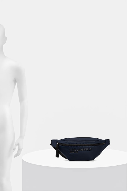 Поясная сумка среднего размера из коллекции Karl Lagerfeld Jeans. Модель застёгивается на пуговицы и выполнена из текстильного материала. - Модели линейки Karl Cares изготовлены из материалов, произведенных в ходе устойчивого, экологически чистого процесса производства. - Застежка-молния. - Несъемный регулируемый ремешок позволяет индивидуально подогнать посадку. - Модель на подкладке. - Внутренних карманов нет. - Глубина: 7 см. - Высота: 14 см. - Ширина у основания: 30 см.
