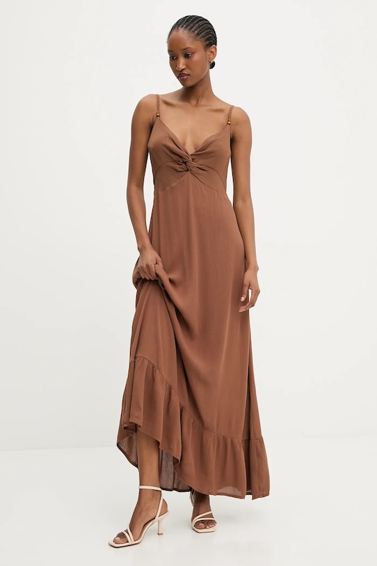 Это платье из коллекции Answear.LAB выполнено из тонкой, неэластичной ткани. Эта модель выполнена из исключительно комфортного и дышащего материала, идеально подходящего для теплого времени года. - Расклешенный крой. - Декоративный, заостренный вырез. - Регулируемые, несъемные лямки. - Эластичная вставка обеспечивает индивидуальную посадку. - Модель с декоративными оборками. - Длина: 139 см. - Ширина под мышками: 40 см. - Ширина талии: 36 см. - Указаны размеры: S/M.